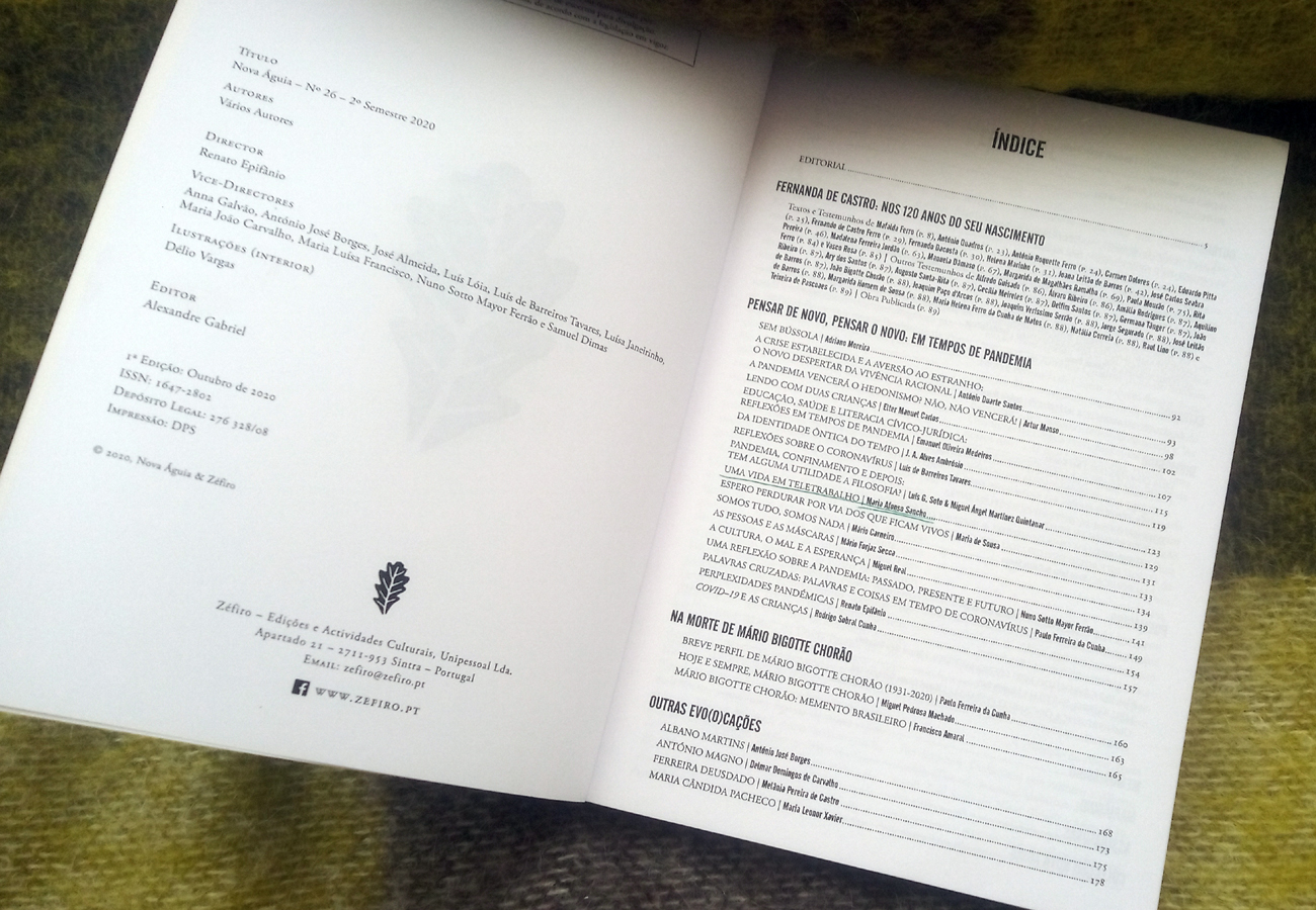 This book republishes more than a dozen essays. They were first published in No. 26 of the magazine NOVA ÁGUIA: revista de cultura do século XXI.
